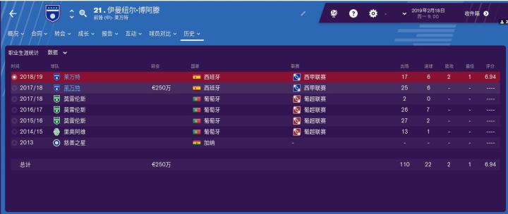 与曾经AC米兰的暴力美学代表着凯文-博阿滕一样,埃曼努埃尔-博阿滕也来自加纳,现年22岁的E-博阿滕已经是加纳国家队的一员,可谓年少有为的代表。E-博阿滕的职业生涯从国内俱乐部慈善之星起步,2014年,年仅17岁的博阿滕就被葡超俱乐部里阿维河引进,从本国联赛出道到加盟欧洲联赛,这是很多非洲球员故事的开始。虽然当年的E-博阿滕只有17岁,但凭借出色的身体素质还是在新俱乐部获得了不少比赛机会,只不过担任前锋的E-博阿滕更多以替补角色出战,13次出场只为球队打入1球。加盟葡萄牙联赛的第二年,E-博阿滕又转投莫雷拉人俱乐部,但他的进球率仍然不高,效力三年总计为球队出战55场比赛,打入9个进球。